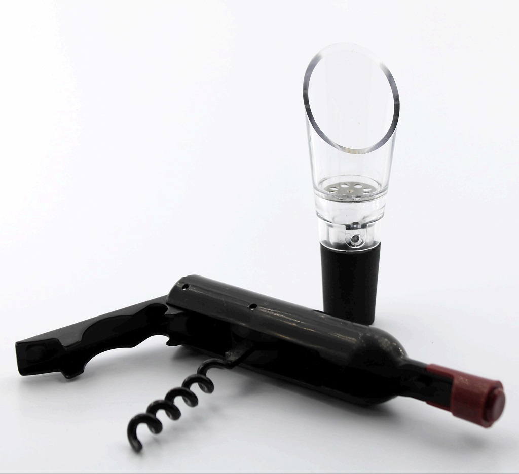 This compact wine accessory set combines three essential tools in one lightweight design: a bottle opener for caps, a corkscrew for wine bottles, and a wine aerator pourer. Designed for portability, functionality, and durability, this set is perfect for everyday home use, travel, picnics, bars, or professional service.