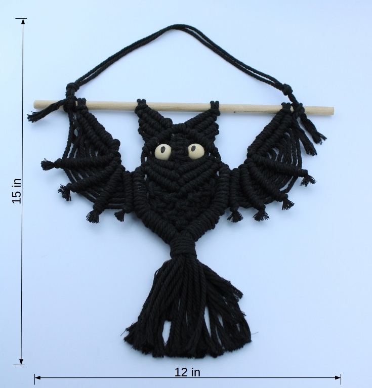 Measuring 15 inches tall and 12 inches wide, this macramé bat looks striking in living rooms, offices, bedrooms, craft rooms, or seasonal displays. Lightweight and easy to hang, it adds an artistic, playful touch to modern, rustic, and boho-inspired spaces.